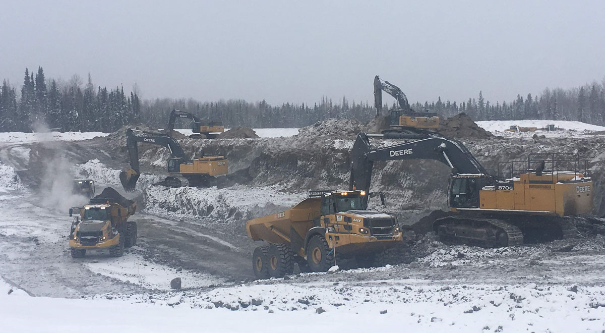 Our scope of work includes 10 km of Main Access Road (MAR) construction, rough grading for the Central Processing Facility (CPF) and a bridge over the North Steepbank River. Additionally, some roads and pads for drilling and test wells. Approximate quantities for the project are as follows: